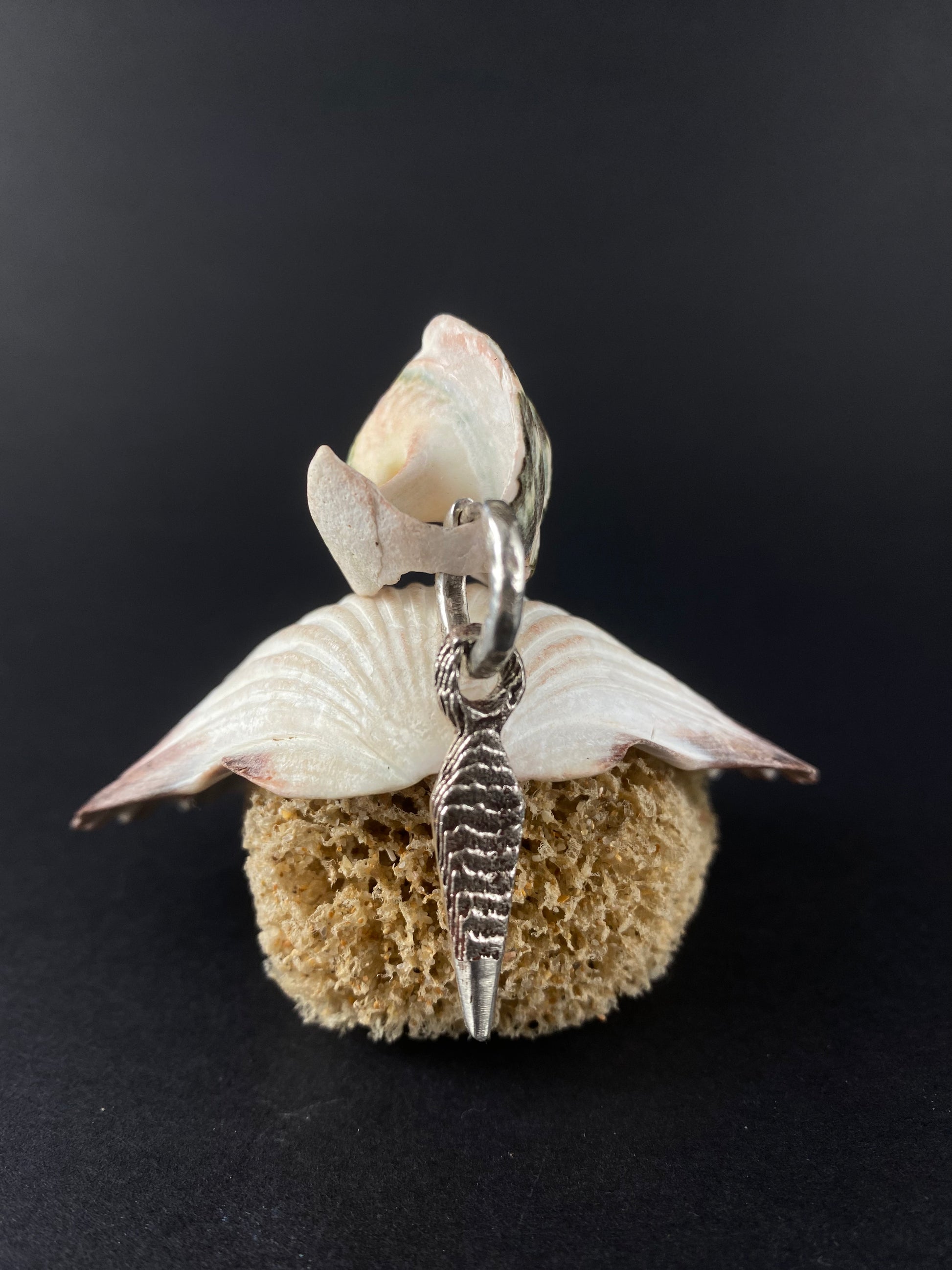 A sterling silver charm, cast using cuttlefish bone. As all pieces are cast in cuttlefish, the natural pattern of the cuttlefish will lead to unique variations between pieces, meaning the earrings you receive will not have the identical pattern to the displayed image.