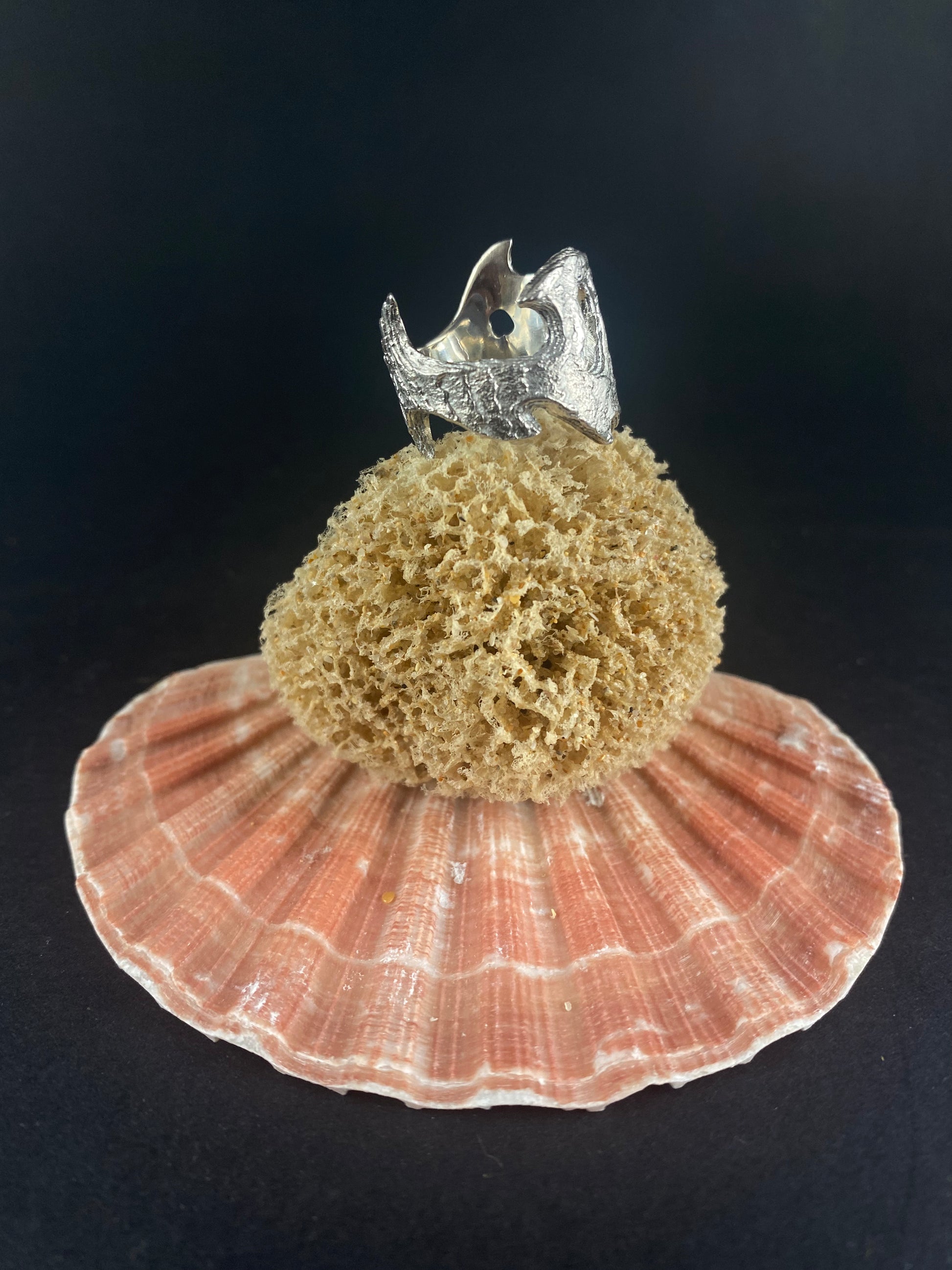 A beautiful grotto ring showcasing the unique cuttlebone texture.