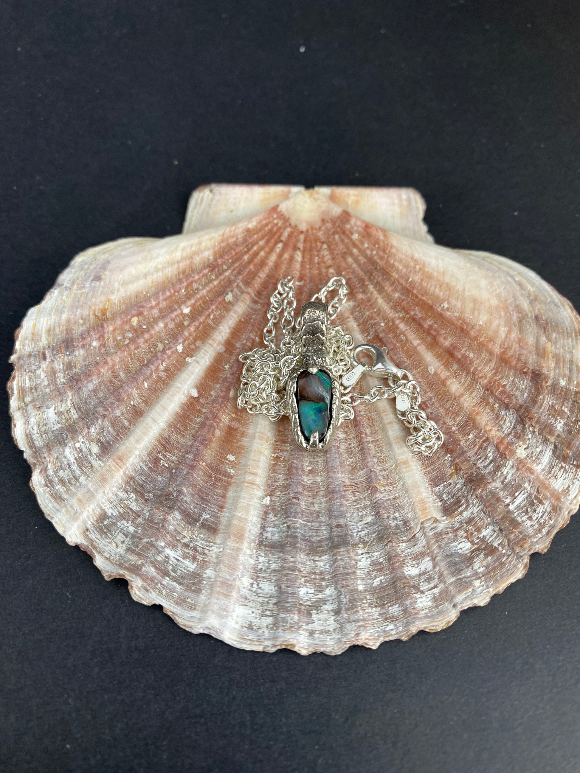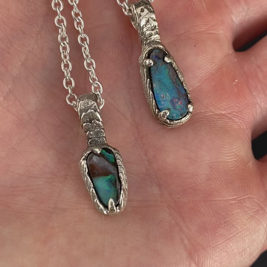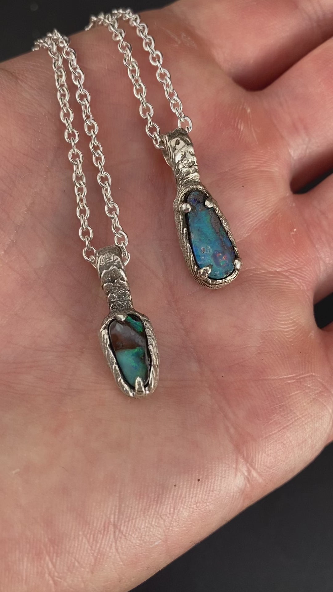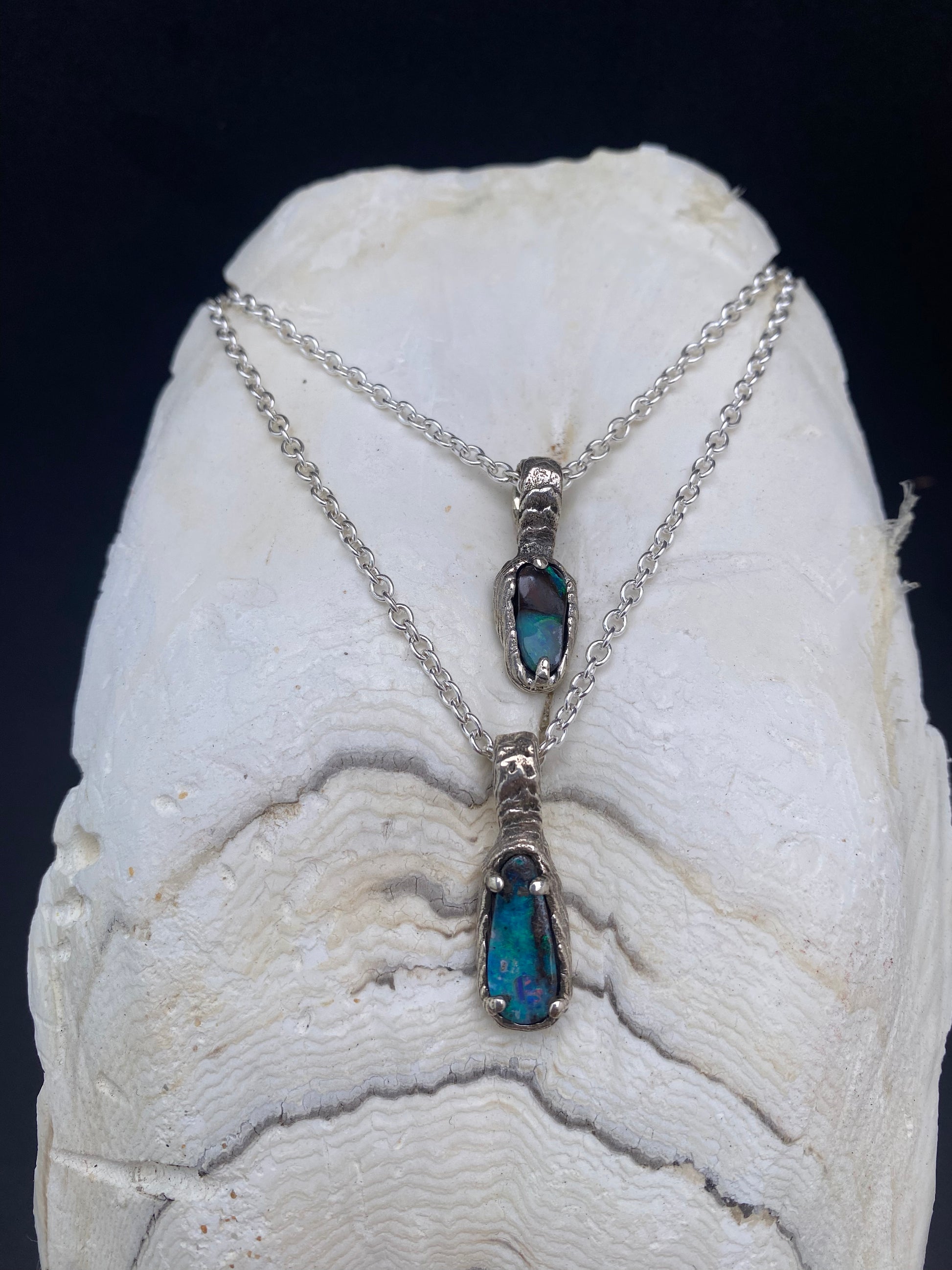 2x Opal necklaces in cuttlebone casted sterling silver. Custom order for Angela. Thank you so much!!